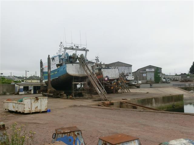 Im inneren Bereich des Hafens wird das Wasser durch ein Sperrwerk zurückgehalten. Hier liegen etliche Fischerboote in der Nähe der Fischhalle. Port-en-Bessin ist ein wichtiger Fischereihafen bei dem man alles beobachten kann ... ... wie hier hier die Arbeit der Fischer an den langen Stahltrossen auf der "Reeperbahn". Auch auf der Werft wird fleißig gearbeitet und wir sehen erstaunt, welchen Tiefgang diese Boote haben. Der "Strand" von Port-en-Bessin würde uns auch bei blauem Himmel nicht zum Bleiben veranlassen und so fahren wir weiter ... ... zum "kuscheligen" Wohnmobil-Stellplatz von Isigny-sur-Mer. Wir sind begeistert von der idyllischen Lage des kostenlosen Platzes. Besonders sehenswert ist Isigny-sur-Mer, wenn es bei Niedrigwasser weitgehend trocken liegt. Am "Stadtstrand" warten die Enten auf die Flut. Trotz der hübschen Häuser und der blumengeschmückten Brücken zieht es uns weiter, wir wollen wieder direkt ans Meer. Solch einen Platz finden wir auch, indem wir einige Kilometer vor St-Vaast-la-Hougue in der Nähe eines landseits auf einem Hügel gelegenen Leuchtturms rechts in diese Straße meerwärts abbiegen. Hier verbringen wir zwei schöne ruhige Tage mit Regina und Thomas, die wir bereits in La Mailleraye kennengelernt haben. Über die Bucht hinweg haben wir die Festung "La Hougue" im Blick ... ... und können den Wechsel der Gezeiten von Niedrigwasser ... ... bis Hochwasser und umgekehrt beobachten. Der Platz bietet sich auch gut als Ausgangsbasis für eine Radtour nach St.-Vaast-la-Hougue (machen Regina und Thomas) oder für Wanderungen auf dem Küstenwanderweg "Sentier Littoral" an. Über letztere berichten wir in Teil 5 dieses Reiseberichtes.