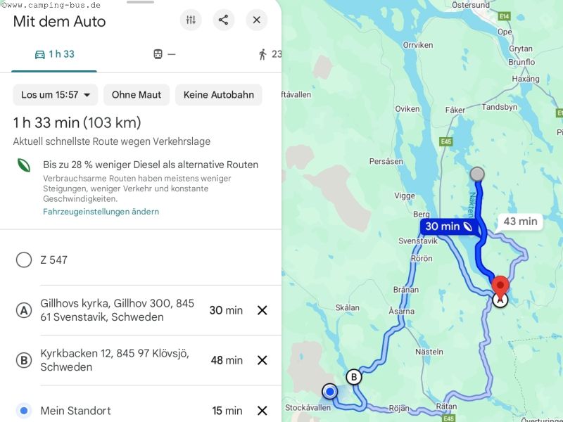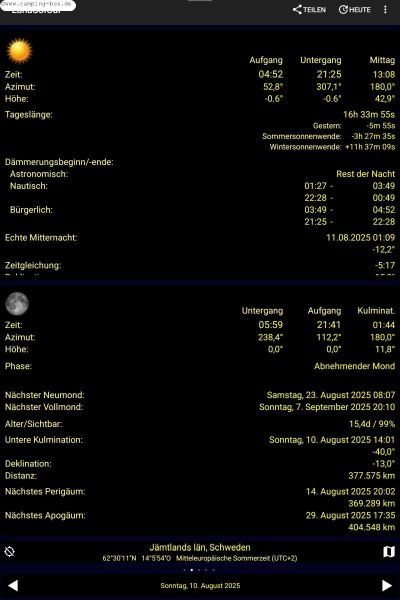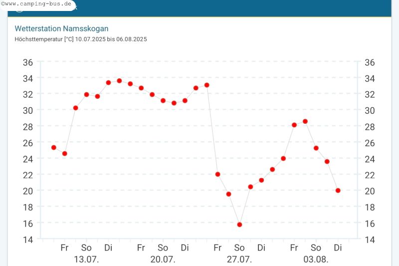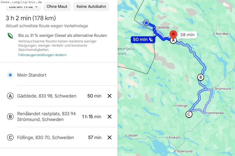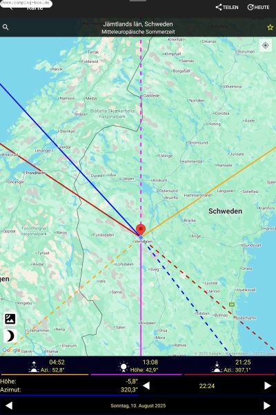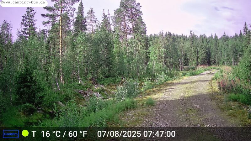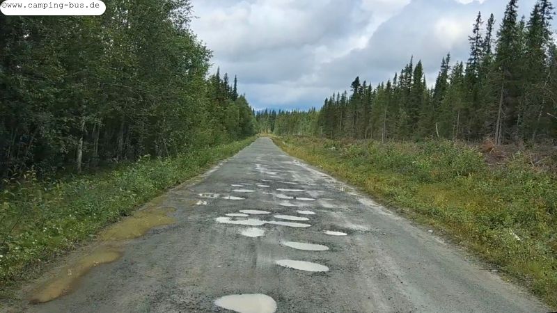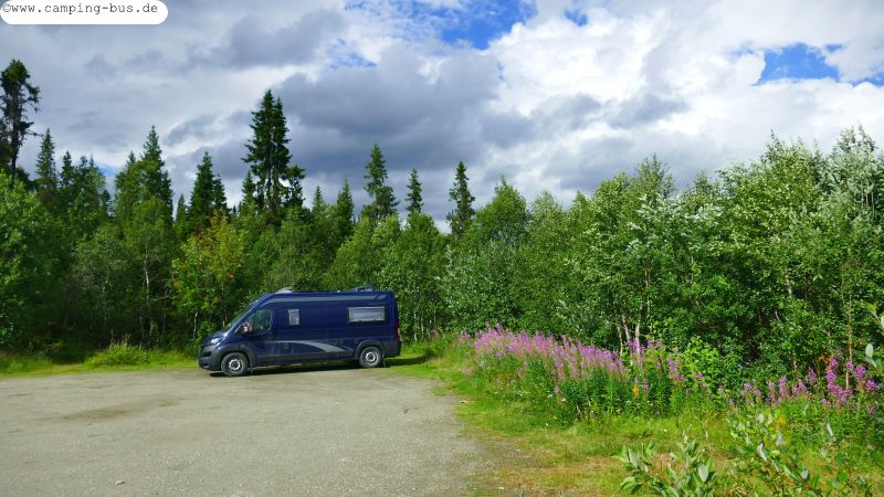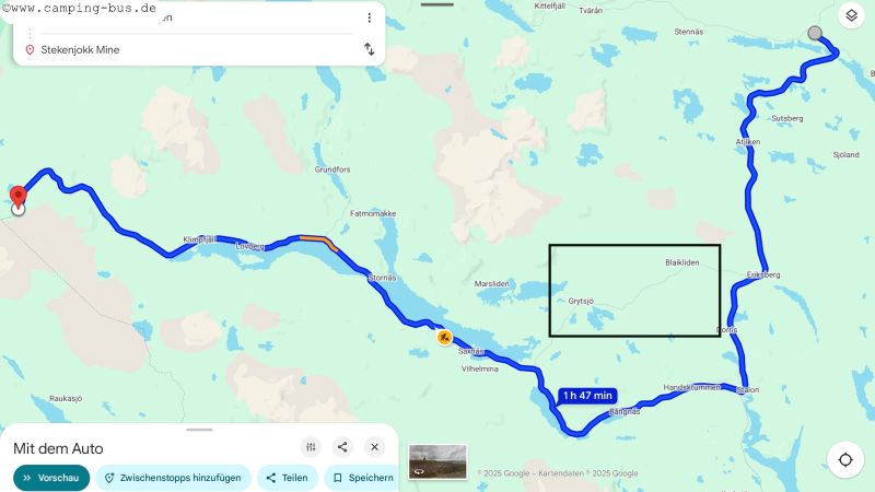 Mit dem Wohnmobil auf dem Vildmarksvägen über Stekenjokk und weiter bis zum Skigebiet StorhognaTeil 5 von 6: Reise mit dem Wohnmobil durch Schweden im Sommer 2025 Vom nördlichsten Übernachtungsplatz unserer Reise bei Dikanäs fahren wir über das Stekenjokk-Plateau und den Vildmarksvägen nach Süden. Wir wechseln zwischen Plätzen an Seen mit schönen Wolkenspiegelungen und Abendhimmeln und Plätzen im Wald. Die Wildkameras erwischen zwar keinen Bären aber wenigstens Füchse und einen Dachs. Man freut sich ja über Kleinigkeiten :-) Das gilt auch für die letzten Rentiere und Leuchtende Nachtwolken sowie schwaches Polarlicht bei noch ziemlich hellem Nachthimmel. 04./05.08. Dikanäs - Trappstegsforsen - Stekenjokk - Stora Blasjön 136 kmNach drei Tagen an den rauschenden Flüssen wollen wir hoch hinaus zum Stekenjokk-Plateau. Google Maps möchte uns auf der Asphaltstraße über Stalon leiten. Aber wir bevorzugen bekanntlich die guten schwedischen Schotterstraßen und kürzer ist die Strecke über Blaikliden und Grytsjö auch noch. Also biegen wir am Wegweiser Blaikliden 7" ab. Die ersten Kilometer sind noch bestens in Ordnung aber die weiteren bis Grytsjö eine Schlagloch-Qual. Schotter zur Verbesserung liegt aber schon haufenweise an der Strecke.