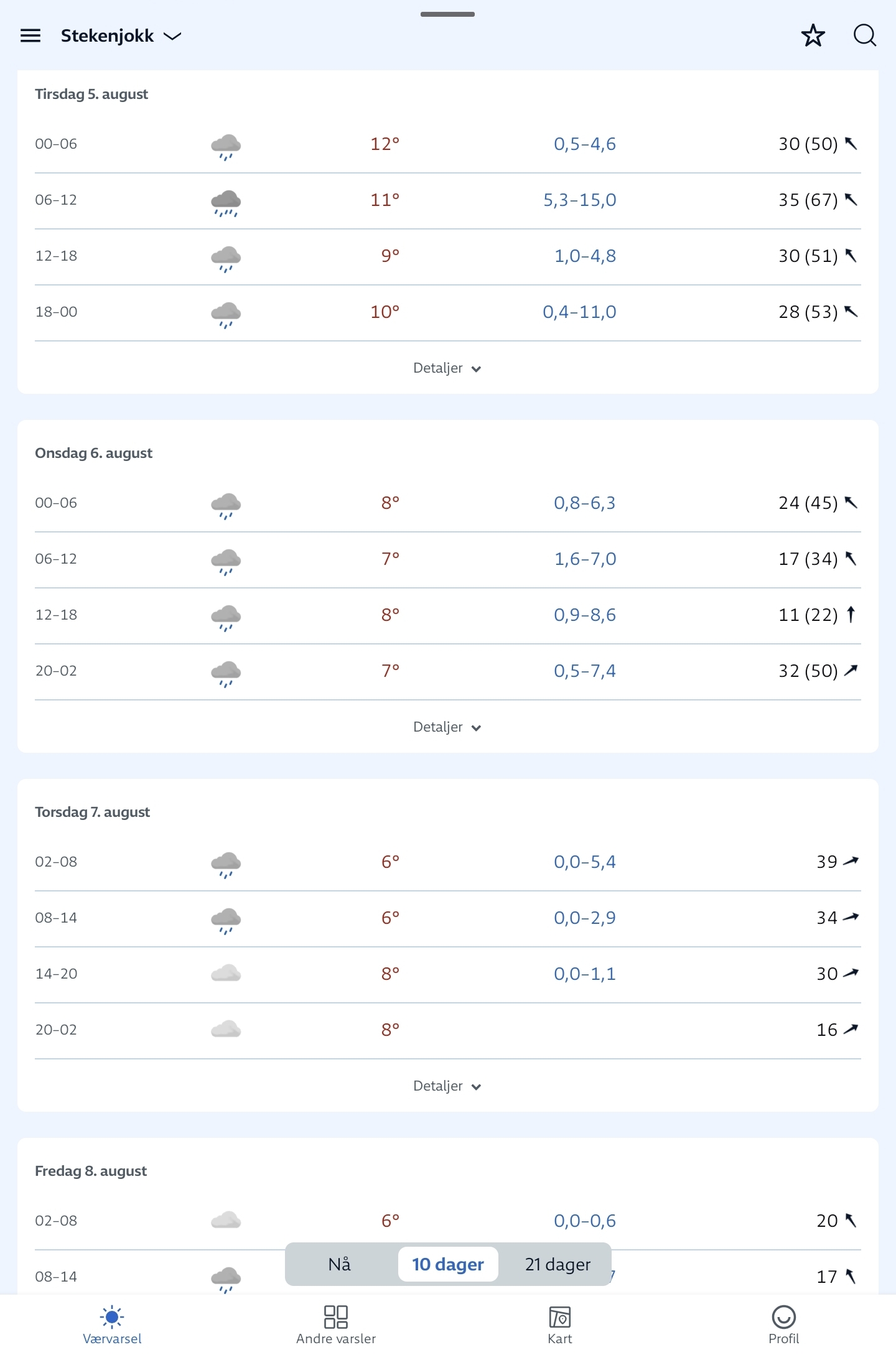Diesmal lädt die Wetterprognose nicht zum Bleiben ein. Wochenlang haben wir euch etwas von der Hitze in Lappland mit über 30 Grad vorgejammert - aber 8 Grad Höchsttemperatur und Böen bis 67 km/h sind uns auch wieder nicht recht :-)