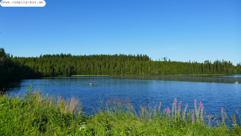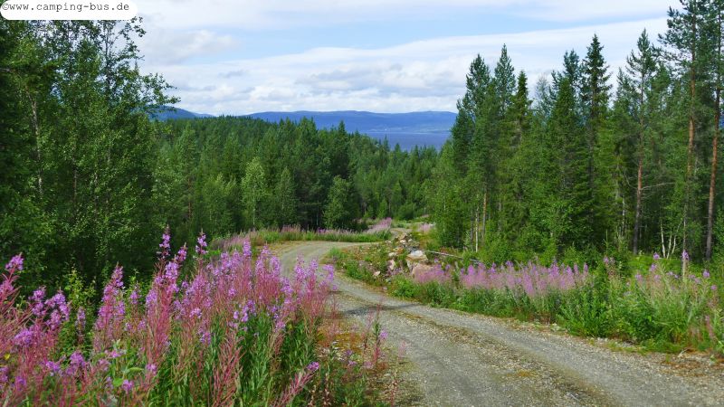 05. bis 07.08. Stora Blasjön - Gäddede 76 kmMan hat´s nicht leicht als Großwildjäger! Elche, Bären, Vielfraße und viele andere Tiere leben in der schwedischen Wildnis. Ganz besonders beworben für den Tierreichtum wird die Touristenstraße "Vildmarksvägen". Auf der Asphaltstraße sieht man zwar massenweise Wohnmobile aber kaum ein vierbeiniges Lebewesen. Also fahren wir bei Gäddede in einen Waldweg und finden einen perfekten Platz zur Wildbeobachtung auf einer Kuppe. Video Anfahrt Gäddede Wildbeobachtung