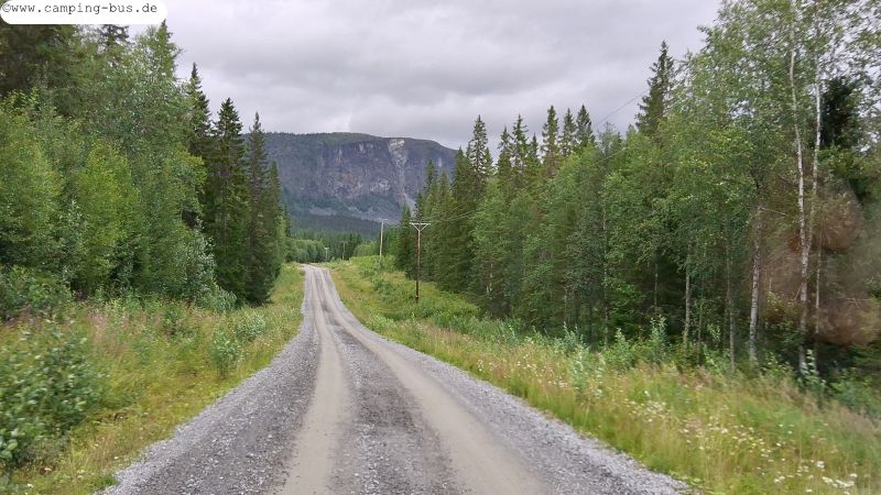 07. bis 09.08. Gäddede - Vildmarksvägen - Föllinge 178 kmUnsere Alternativstrecke führt südlich und westlich des offiziellen Vildmarksvägen auf Schotterstraßen nach Föllinge. Bei der Fahrt sehen wir den markanten 682 m hohen Kalberget, dessen Südflanke 300 m steil abfällt.
