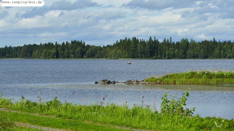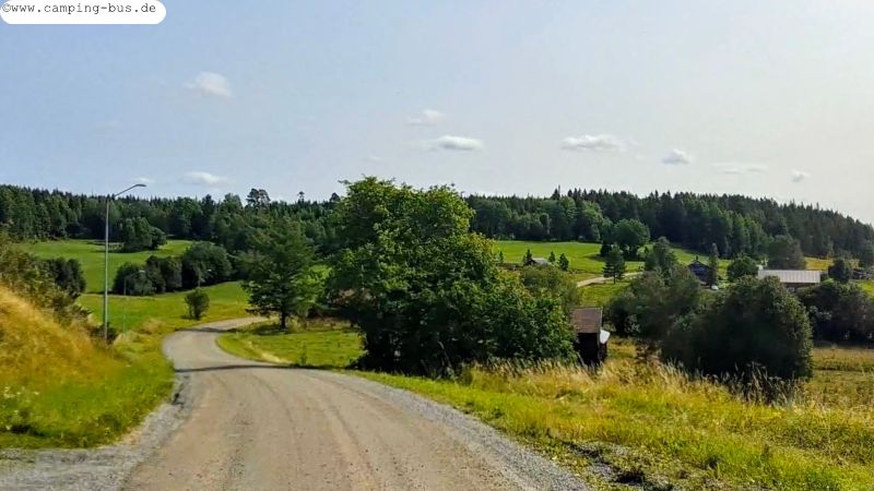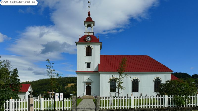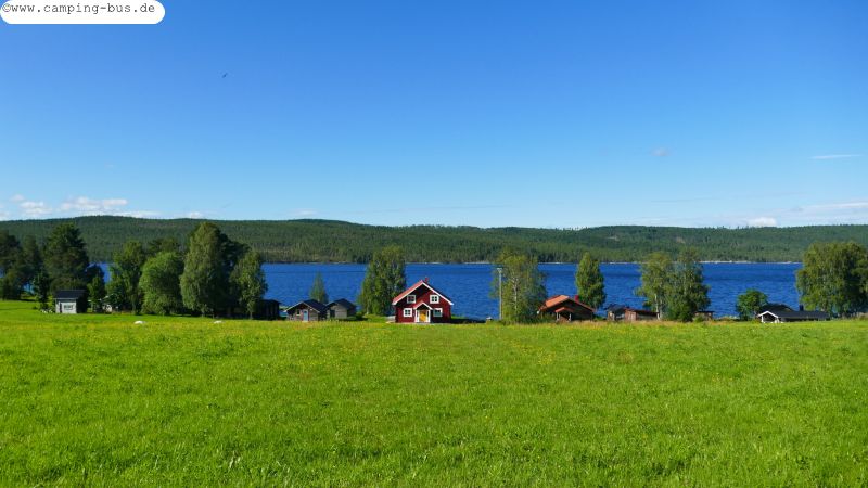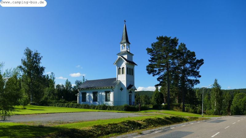 In Gillhov am Südzipfel des Sees gibt´s sogar eine Kirche. Nach ca. 50 Kilometern auf Schotter dürfen die Reifen wieder auf Asphalt fahren.