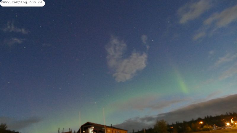 Gegen halb eins rafft uns die Müdigkeit dahin und wir überlassen den Kameras die Beobachtung des Himmels. Optimal habe ich sie nicht eingestellt, wie das Ergebnis am nächsten Morgen zeigt. Aber für den Beweis reicht es: Wir hatten Polarlicht :-)