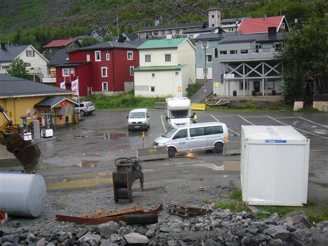 Was wir leider nicht finden ist ein Übernachtungsplatz. So biegen wir wenige Kilometer vor Gryllefjord nach Torskens ab. Hier gibt es zwar nach 4 km eine alte sehenswerte Kirche mit einem kleinen Parkplatz direkt im Ort und einen winzigen Picknickplatz am Ortsrand. Aber der wäre praktisch belegt, wenn wir mit unserem "riesigen" Campingbus hier bleiben würden. Also vertrauen wir weiter auf den Hafen mit dem ... ... Fähranleger in Gryllefjord und trauen unseren Augen kaum als wir kurz nach der Ortseinfahrt direkt im Zentrum des kleinen Ortes zwischen Wohnhäusern und ICA-Supermarkt die Wartespuren für die Fähre sehen. Der Anleger befindet sich direkt hinter dem dunklen Holzpavillon (Tourist-Info). Wie doof! Doof ist auch die nächste Erkenntnis: Die Abfahrt erfolgt um 19 Uhr, Fahrzeit ca. 1:40 Stunden - jetzt ist es ca. 16 Uhr. Am nächsten Tag soll die erste Fähre um 11 Uhr nach Andenes fahren - alles doof! Nach kurzer Überlegung beschließen wir, heute mit der Fähre überzusetzen in der Hoffnung, nach der Ankunft einen brauchbaren Parkplatz für die Nacht am Anleger in Andenes zu finden. Für unser "Bil 6 m" zahlen wir incl. Fahrer 410 NOK, ein Erwachsener kostet zusätzlich 165 NOK. Wie gut, dass wir in Unkenntnis des Fahrplans - den wollte ich erst bei unserem Aufenthalt auf Senja recherchieren - so früh auf dem Parkplatz waren. Wer zuletzt kam, hatte noch mehr Pech als wir: Die Fähre ist voll, aber der Parkplatz nicht leer: Die letzten müssen warten auf die Fähre am nächsten Morgen um 11, auf den Besuch der Vesteralen verzichten oder ca. 200 km Umweg fahren. Wir haben aufgrund unserer ungeplanten Ankunft am Anleger gegen 16 Uhr natürlich einen Platz bekommen. Mit ca. 20 Minuten Verspätung legt die Fähre gegen 19:20 Uhr ab und erreicht kurz vor 21 Uhr nach stürmischer und wellenreicher Fahrt den Hafen von Andenes. Wir wollen nur noch eins - essen und schlafen! So stellen wir uns direkt neben die Auffahrtspuren für die Fähre nach Gryllefjord, die am nächsten Morgen um 9 Uhr startet. 13.07. bis 17.07.2011 Andenes - Bleik (Camping Midnattsol) 14 kmDa wir nicht kurz vor Abfahrt der Fähre nach Gryllefjord am Anleger frühstücken wollen, kurven wir zunächst einige Kilometer in Andenes herum auf der Suche nach einem Parkplatz und einem Geldautomaten. Wir finden beides und nach dem Frühstück geht es weiter: Laut einer Broschüre der Touristinformation soll es in Bleik ca. 10 km südwestlich von Andenes den längsten Strand Norwegens geben - ca. 2,5 km Sandstrand. Und laut Internetrecherche soll es dort den Campingplatz Midnattsol geben. Der heisst so, weil man von Bleik aus freie Sicht nach Norden hat und somit vom Campingplatz aus die Mitternachtssonne über dem Meer sehen kann - wenn keine Wolken die Sonne verstecken. Aber an unserem Ankunftstag sehen wir keinen Sonnenstrahl sondern es regnet sogar gelegentlich, wie am Beginn dieser Seite erwähnt. Laut Wetterprognose soll es am Folgetag ab mittags auflockern. Und siehe da: