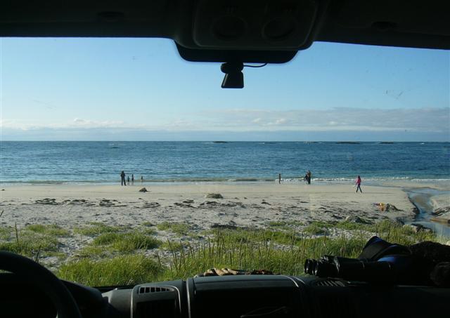 Aber wir haben heute ein anderes Wunschziel: Den Strand mit freiem Blick aufs Nordmeer von Bøvær. Aber leider gibt es hier nur einen kleinen Wiesenplatz zwischen Strand und den Häusern des Ortes. Der ist sicher nicht zum Verbleib von Wohnmobilen gedacht und mangels anderer Möglichkeiten fahren wir zurück ...