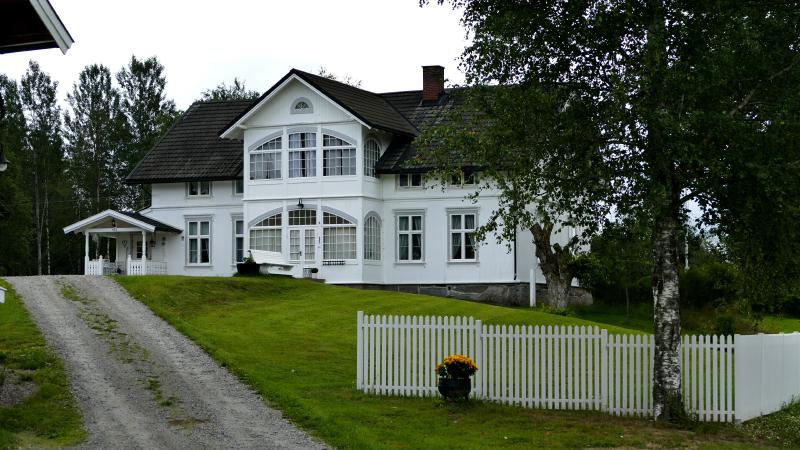 08./09.08. Frysjøen / Norwegen - Botan / Schweden - Arvika - Buvattnet 159 kmÜber ziemlich schlechte Asphalt-Nebenstraßen rumpeln wir Donnerstagmorgen der Grenze zu Schweden entgegen. Vorteil der Nebenstraßen: Kaum Verkehr und somit die Möglichkeit, spontan anzuhalten und zwei typische Häuser der Region Hedmark mit ihren Veranden und Sprossenfenstern zu fotografieren.