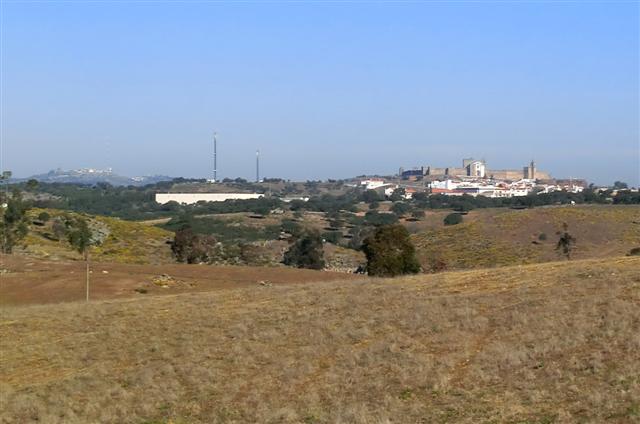 Bei der Weiterfahrt halten wir an einer Stelle am Rand der Straße, von der aus man gleichzeitig Mourao (rechts im Vordergrund) und Monsaraz (links im Hintergrund) mit ihren "überragenden" Festungen sehen kann.