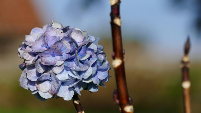 Einzelne Hortensienblüten zeigen noch Farbe