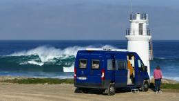Auf unserer Leuchtturmroute im äußersten Norden Spaniens besuchen wir die Faros fünf bis sieben. An der Strecke liegt der bekannte Wallfahrtsort Santo André de Teixido. Surfer, kitschige Sonnenuntergänge sowie Höhlen und Gänge am "kleinen Kathedralenstrand" bieten uns ein abwechslungsreiches Unterhaltungsprogramm.