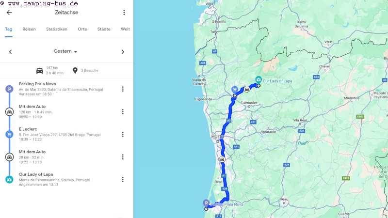 24./25.12. Costa Nova - Braga - Felsen-Kapelle Nossa Senhora da Lapa 168 km - Tag 75Am Heiligabend von der Küste auf 630 m über NN und zwischendurch Wäsche waschen! Es muss getan werden, was getan werden muss :-) Ab Mitte der Woche soll sich das Wetter gewaltig ändern. Regen satt kennen zur Genüge die Leser in Deutschland - und einstellige Höchsttemperaturen im Hinterland werden angekündigt. Deshalb ändern wir am Morgen auch unseren Reiseplan für Heiligabend und den 1. Weihnachtstag gewaltig!
