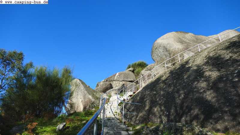 Dann geht es hoch hinaus auf den Parkplatz der ungewöhnlichen Felsen-Kapelle Nossa Senhora da Lapa. Hier finden wir einen Parkplatz mit Aussicht und Ruhe für den Rest des Tages.