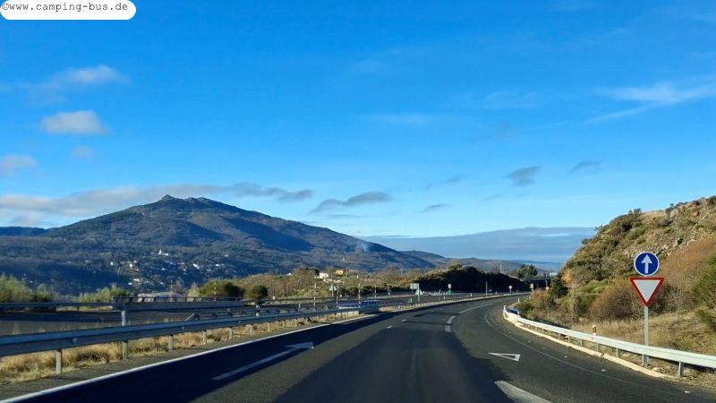 11. bis 13.01. Alaejos - Malpartida de Cáceres/ Los Barruecos 286 kmBei der Weiterreise nach Süden überqueren wir am Sonntag auf der A 66 die Ausläufer der Sierra de Gredos mit dem 2.592 m hohen Pico Almanzor als höchstem Gipfel.