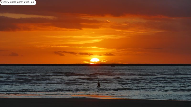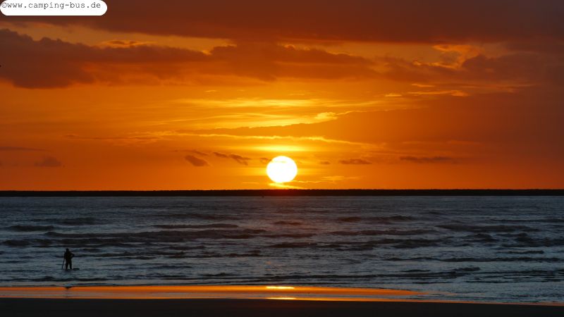 Samstagmorgen bin ich gerade rechtzeitig zum Sonnenaufgang am Strand.