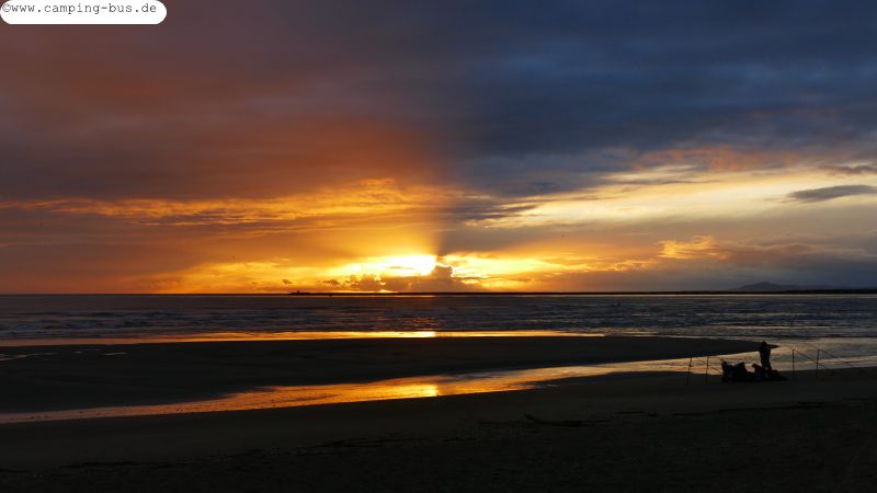 Es wundert uns immer wieder, dass hier im Winter an der westlichen Costa de la Luz Andalusiens fast alle touristischen Einrichtungen geschlossen haben im Gegensatz zu denen an der Algarve auf der anderen Seite der Grenze. Strandwanderer gibt es hier kaum, stattdessen Muschelsucher und Angler zu allen Tages- und Nachtzeiten. Wegen denen verzichten wir auch auf die freien Parkplätze in der ersten Reihe. Die Sicht auf Wellen und Meer ist so gut genug.