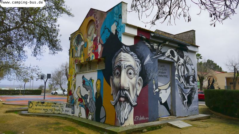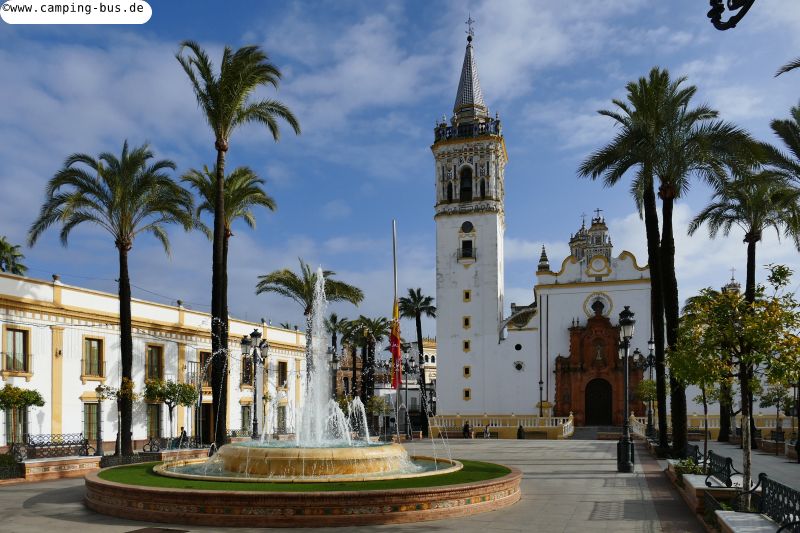 22. bis 25.01. Matalascañas - La Palma del Condado 65 kmNach einer Woche an der Küste fahren wir Donnerstag ins Hinterland auf den Stellplatz der schönen andalusischen Kleinstadt La Palma del Condado. Auf dem Stellplatz stehen wir fast allein, die meisten anderen Wohnmobile verteilen sich auf weiteren Flächen in der Umgebung.
