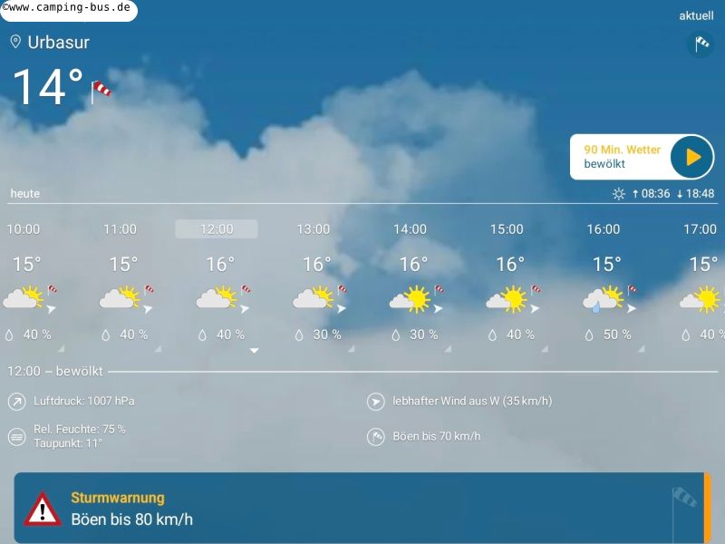 Dann kommt allerdings die Sturmwarnung für die nächste Nacht: 100 km/h!