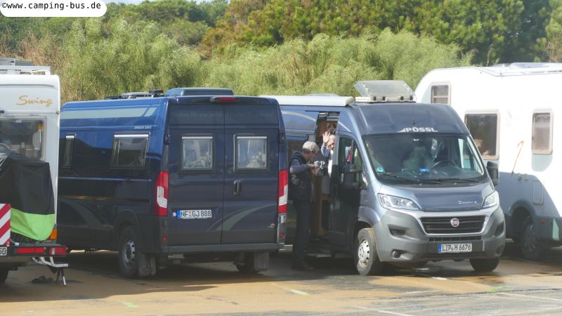 Wir verbringen den zweiten Abend mit Heidi und Helmut bei portugiesischem Wein und interessanten Gesprächen und harren der stürmischen Nacht, die da kommen soll. Wir schlafen ungestört vom Sturm und merken erst nach dem normalen Aufwachen Mittwochmorgen, dass unser Blauer Nordfriese manchmal etwas schaukelt. Als es hell wird zeigt aber der Blick aus unserem Wohnzimmer auf die Wellen, dass die Böen doch wohl stärker waren als in der Nacht zuvor.