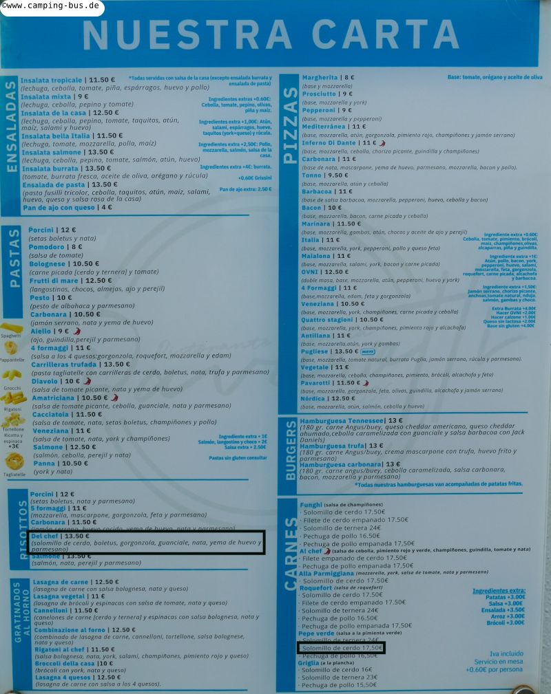 Die von Google Lens übersetzte Speisekarte