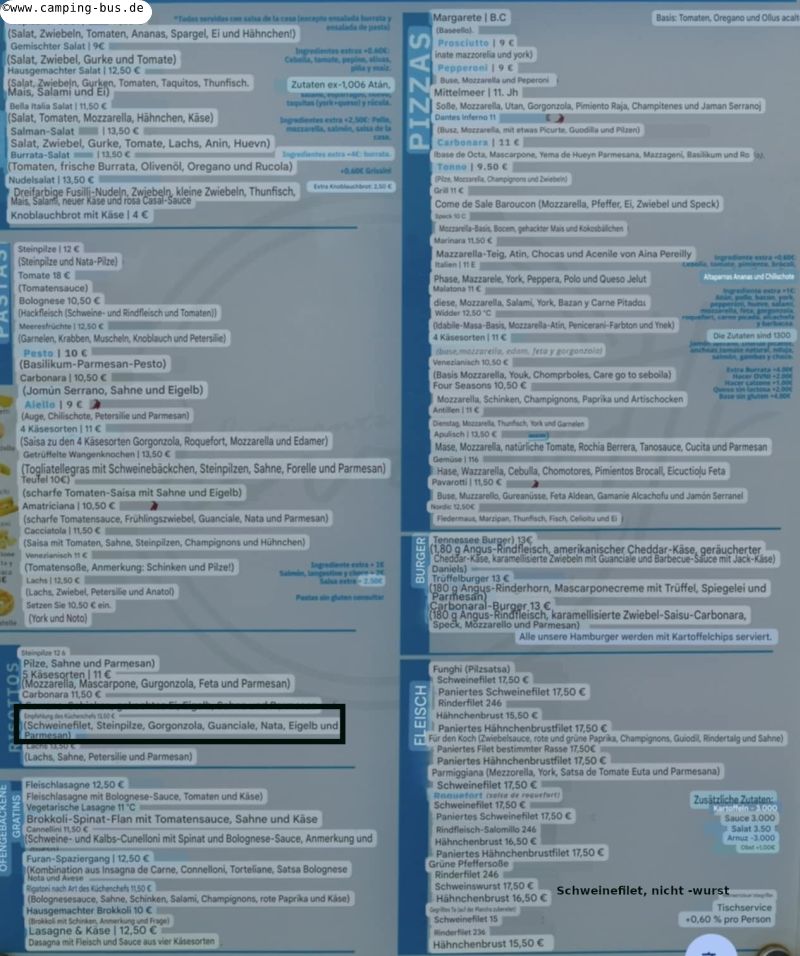 Nicht typisch italienisch aber auch hervorragend: Schweinefilet mit Pfeffersauce, Salat und richtig knackigen Pommes.