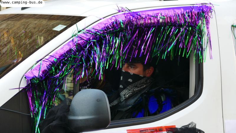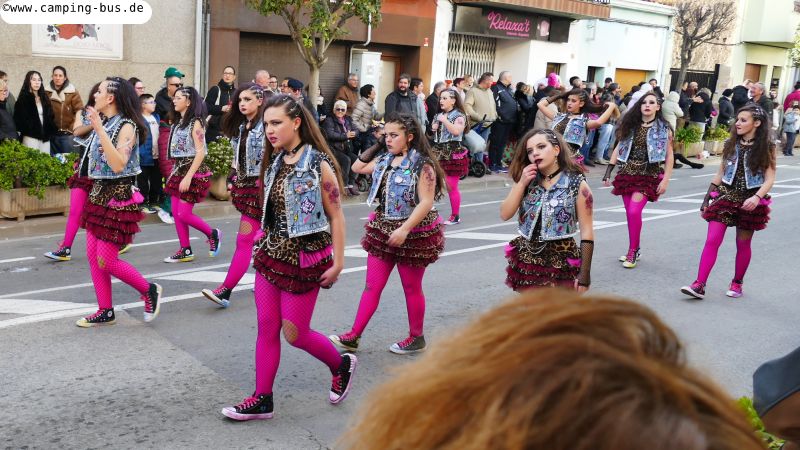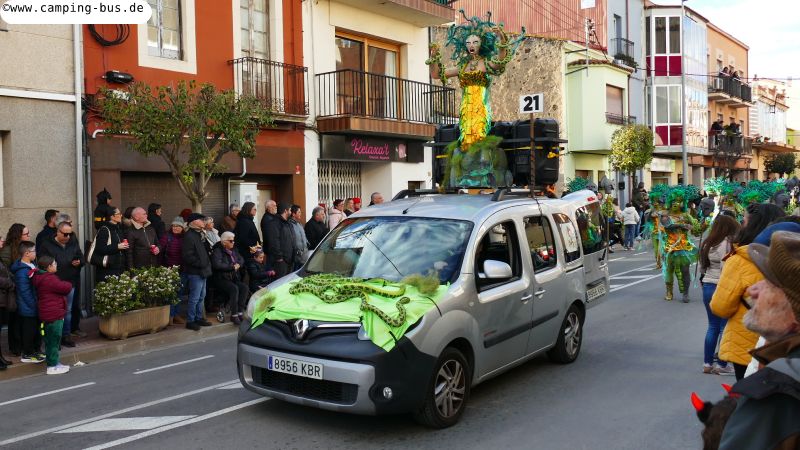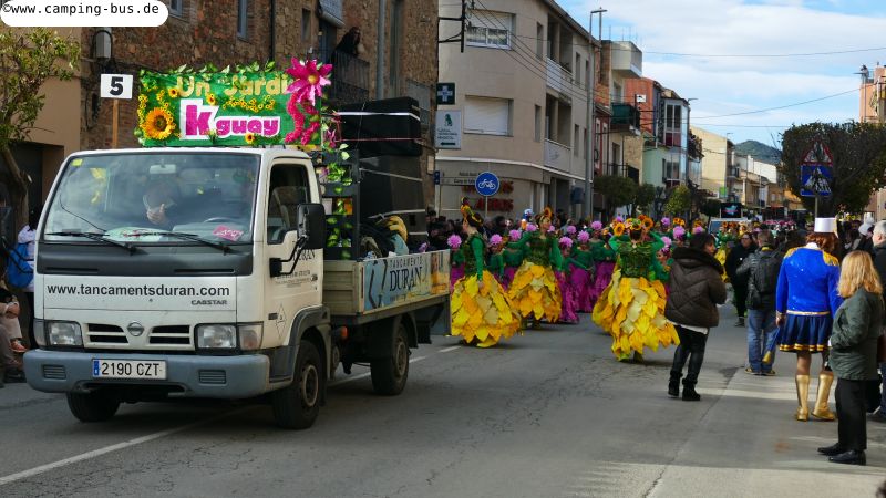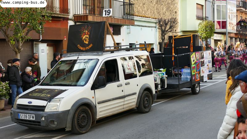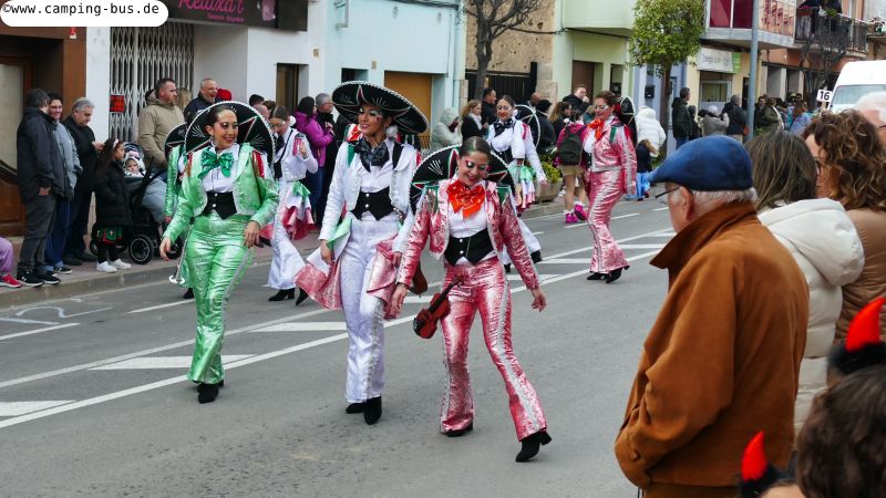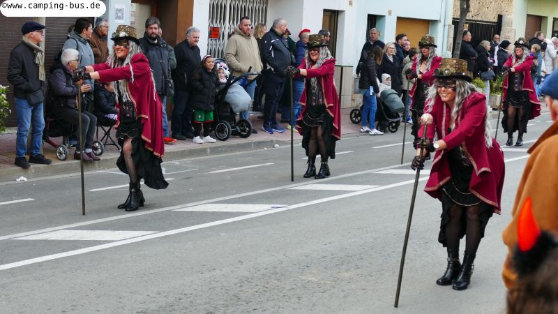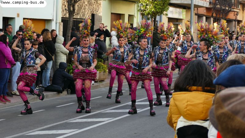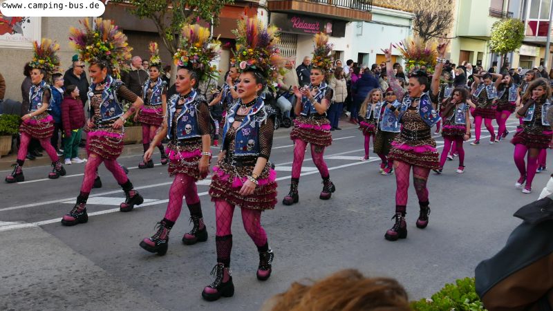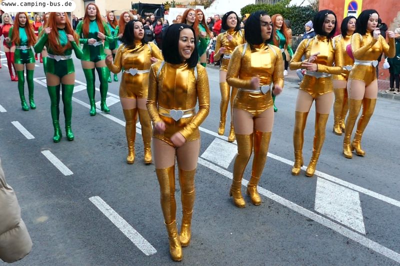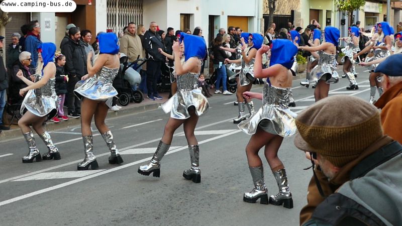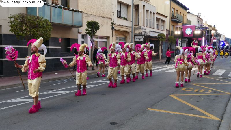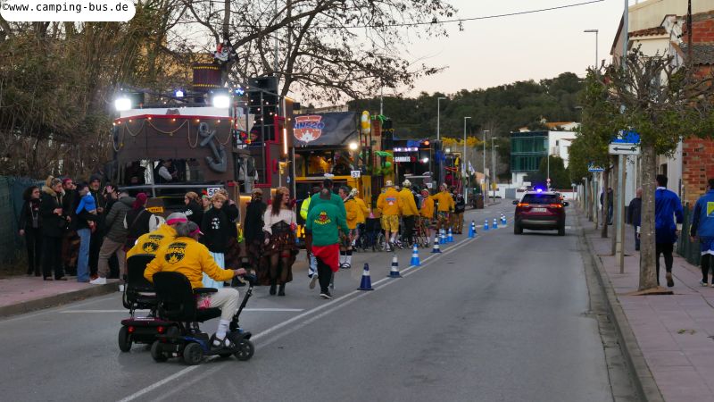 Grandiosa Rua de Carnaval 2026 - Karnevalsumzug in PalamósTeil 8 von x: Überwintern mit dem Wohnmobil in Spanien und Portugal im Winter 2025/2026 Der wichtigste Grund für unseren Aufenthalt in Palamós ist der Große Karnevalsumzug am Samstag. Der hat mit dem Rosenmontagsumzug in Köln und anderen Metropolen deutschen Karnevals aber nicht viel Ähnlichkeit! Italopop, Bon Jovi, Lady Gaga, Rock'n'Roll und vieles mehr aus 80 Jahren internationaler und spanischer Rock- und Popmusik gibt's beim Grandiosa Rua de Carnaval in Palamós zur Begleitung der Tänzerinnen und Tänzer in unterschiedlichsten Kostümen. Von knapp 30 der 60 Gruppen und Wagen habe ich Videoclips geschnitten, zusammengefügt und bei YouTube hochgeladen: https://youtu.be/27X7jehAJpk?si=IT6ftjxeUufjZTUF Musik und Tanz hört und sieht man natürlich am besten im Video. Die Kostüme vieler Gruppen kann man auf den folgenden Fotos bewundern. Gegen 14:30 Uhr gehen wir an den Gruppen vorbei, die auf den Beginn des Umzuges warten. Knapp drei Stunden später kommen wir wieder hier entlang auf dem Weg zum Wohnmobil-Stellplatz "Autocaravaning Palamós". Da warten noch ca. 12 Gruppen auf ihren Start! Die fehlen natürlich auf Fotos und Video, aber wir waren "platt".