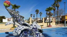Teil 4: Im Westen Andalusiens in La Palma del Condado und an der Costa de la Luz in IslantillaZur Abwechslung von Strand und Meer fahren wir in die schöne Kleinstadt La Palma del Condado. Dann beunruhigen uns Sturmwarnungen bis 100 km/h. Wo finden wir einen windgeschützten Platz? Aus der Vorwoche kennen wir die Parkplätze in Islantilla und genau da fahren wir hin! Perfekter Windschutz und gleichzeitig freie Sicht auf die riesigen Wellen - solche Plätze sind nicht leicht zu finden :-)